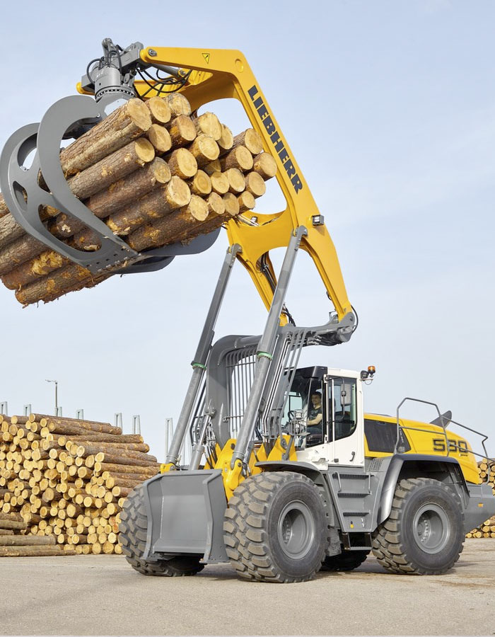 Esto aumenta enormemente la capacidad de manipulación por hora de servicio en comparación con los cargadores frontales liebherr sobre neumáticos normales.
